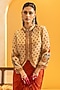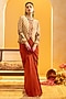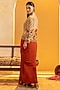 Featuring a beige jacket in crepe base. It is paired with a maroon printed draped skirt. Style it with heels, dangler earrings and soft curls for a festive occasion, cocktail party or sangeet ceremony.