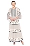 Featuring a navy blue and offwhite maxi dress in slub cotton silk base with print.