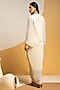 Featuring an off-white asymmetric top in organza base with embellishments and a v-neck. It is paired with a slip and a crepe printed draped skirt. Style it with heels, dangler earrings and soft curls for a classy look. Ideal for a family gathering, cocktail party or sangeet ceremony.