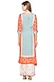 Featuring an orange kurta in crepe base with mughal print. It is paired with matching off white palazzo pants.