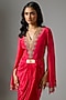 Featuring a pink draped dress in crepe base with hand embellishments. Accentuate it with dangler earrings and block heels for festive celebrations.