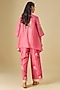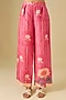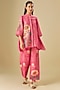 Featuring a pink top for girls in linen base with floral print and hand embroidery. It is paired with pants. Accentuate it with dangler earrings and heels for a festive look.