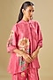 Pink Linen Floral Printed & Hand Embroidered Co-Ord Set