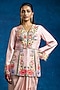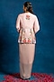 Featuring a pink top in malaysian silk base with embellishment. It is paired with an organza draped skirt. Accentuate it with stud earrings and wedges for a festive look.
