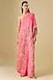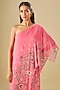 Featuring a pink one-shoulder jumpsuit in sequins base with hand embroidery. Accentuate it with dangler earrings and heels for a festive occasion.