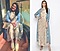 Featuring a powder blue long jacket in cotton silk base with prints and highlighted embroidery. It is paired with a matching pleated dress.