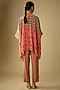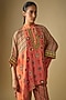 Featuring a rust kimono kurta in crepe base with embellishments and neck tie-up detail. It is paired with printed pants. Accentuate it with stud earrings and block heels for evening wear, casual outings or family dinners.