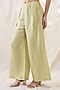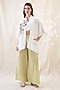 Featuring a white overlapped top in linen base with applique work. It is paired with stripe straight pants. Accentuate it with statement earrings and flats for a casual wear.