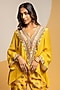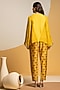 Featuring a yellow asymmetric top in chanderi base with embellishments and a V-neck. It is paired with a slip and printed pants. Style it with heels, dangler earrings and ponytail for a classy look. Ideal for a festive occasion, family gathering or pooja ceremony.