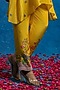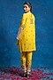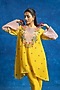 Featuring a yellow and pink kurta in cotton net base with color blocking and applique detail. It is paired with printed viscose linen pants and a slip. Accentuate it with hoop earrings and wedges for a festive look.