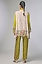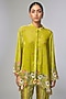 Featuring a yellow kurta in velvet base with embellishment. It is paired with pants. Accentuate it with statement earrings and heels for a festive or haldi ceremony.
