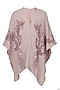 Featuring a pink cashmere cape with dark pink contrast swirls in front.