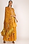 Featuring a yellow short kurta in silk chanderi base with pearls and beads hand embroidery. It is paired with matching muslin sharara pants and a silk bandhani dupatta.