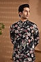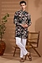 Featuring a black shirt-style kurta for boys in blended silk base with floral print. Style it with pants and mojaris for a festive occasion, cultural event or pooja ceremony.