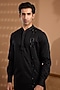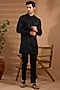 Black Cotton Satin Hand Embroidered Kurta Set For Boys