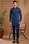 Blue Blended Silk Embroidered Jacket Set For Boys