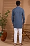 Featuring a blue striped shirt-style kurta for boys in cotton base. Style it with pants and mojaris for a festive occasion, cultural event or pooja ceremony.