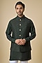 Bottle Green Blended Silk Embroidered Nehru Jacket Set For Boys