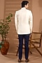 Featuring a cream bandhgala for boys in blended silk base with embroidery. Style it with pants, mojaris for a festive occasion, cultural event, wedding or engagement ceremony.