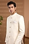 Cream Blended Silk Embroidered Bandhgala For Boys