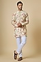 Featuring a cream kurta for boys in blended silk base with floral digital print. It is paired with white cotton pants. Style it with kolhapuri sandals for a festive occasion, wedding or an intimate pooja ceremony.
