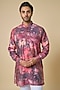 Dark Pink Blended Silk Digital Printed Kurta Set For Boys