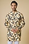 Featuring a grey kurta for boys in blended silk base with floral digital print. It is paired with white cotton pants. Style it with kolhapuri sandals for a festive occasion, wedding or an intimate pooja ceremony.