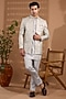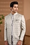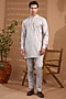 Grey Blended Silk Embroidered Indowestern Set For Boys