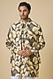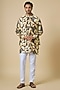 Featuring a grey jacket for boys in blended silk base with floral print. It is paired with a kurta and white cotton pants. Style it with kolhapuri sandals and a watch for a festive occasion, pooja or sangeet ceremony.