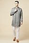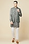 Grey Polyester Cotton Embroidered Bundi Jacket With Kurta Set For Boys