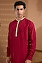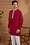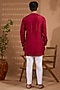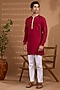 Featuring a maroon kurta for boys in blended silk base with embroidery. It is paired with white cotton pants. Style it with comfortable sandals and a watch for festive celebrations or family functions.