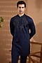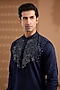 Featuring a navy blue kurta for boys in cotton satin base with metallic hand embroidery. It is paired with pants. Style it with a pair of mojaris and a watch for a festive occasion, cultural event, wedding or engagement ceremony.