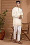 Off-White Blended Silk Embroidered Kurta Set For Boys