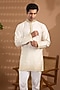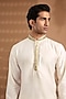 Featuring an off-white kurta for boys in blended silk base with embroidery. It is paired with white cotton pants. Style it with comfortable sandals and a watch for festive celebrations or family functions.