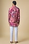 Featuring a pink jacket for boys in blended silk base with floral print. It is paired with a kurta and white cotton pants. Style it with kolhapuri sandals and a watch for a festive occasion, pooja or wedding ceremony.
