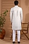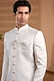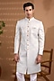Featuring a white sherwani for boys in blended silk base with embroidery. It is paired with cotton satin pants. Accentuate it with a pair of mojaris and a watch for a wedding or engagement ceremony.