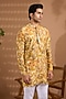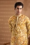 Yellow Blended Silk Embroidered Kurta Set For Boys