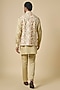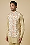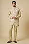 Featuring a beige jacket in blended silk base with floral print and embroidery. It is paired with a cotton satin kurta and pants. Style it with kolhapuri sandals for a festive occasion, wedding or engagement ceremony.