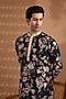 Featuring a black kurta in blended silk base with digital print. It is paired with white cotton pants. Style it with mojaris for a festive occasion, cultural event, mehendi for engagement ceremony.
