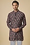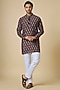 Featuring a black kurta in blended silk base with motif print. It is paired with white cotton pants. Style it with kolhapuri sandals for a festive occasion or an intimate pooja ceremony.