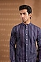 Featuring a blue kurta-style kurta in cotton base with stripe print. Style it with pants and mojaris for a festive occasion, cultural event or pooja ceremony.