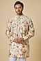 Featuring a cream kurta in blended silk base with floral digital print. It is paired with white cotton pants. Style it with kolhapuri sandals for a festive occasion or an intimate pooja ceremony.