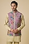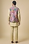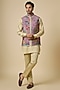 Featuring a pink jacket in blended silk base with floral print and embroidery. It is paired with a cotton satin kurta and pants. Style it with kolhapuri sandals for a festive occasion, wedding or engagement ceremony.