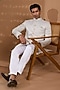 Featuring a white sherwani in blended silk base with embroidery. It is paired with cotton satin pants. Style it with mojaris for a wedding or engagement ceremony.