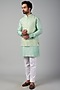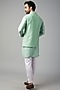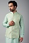 Featuring a mint green bundi jacket in cotton silk base with embroidery. It is paired with a kurta and white pants. Perfect wear for a festive occasion or a pre-wedding ceremony.