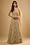 Featuring a champagne gold anarkali for girls in viscose georgette base with cancan, sequins, glass beads and thread embroidery. It is paired with an embroidered soft net dupatta. Style it with sandals, a sling bag and an embellished hairband, ideal for any festive occasion.