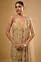 Featuring a champagne gold kurta for girls in soft net base with floral cutwork, thread, and sequin embroidery. It is paired with embroidered viscose georgette sharara pants and a soft net dupatta. Style it with sandals, a sling bag and an embellished hairband, ideal for any festive occasion.