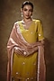 Featuring a citrine yellow kurta for girls in viscose georgette base with pearl, boota, and zari embroidery. It is paired with embroidered sharara pants and a pink shimmer tissue dupatta. Style it with sandals, a sling bag and an embellished hairband, ideal for any festive occasion.