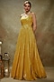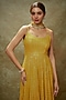 Featuring a haldi yellow anarkali for girls in viscose georgette base with a strappy round neckline, sequins, and thread embroidery. It is paired with a soft net dupatta. Style it with a pair of sandals and hair accessories for any festive occasion or haldi ceremony.