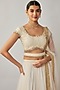 Featuring an ivory lehenga for girls in soft net base with a pocket, cancan, floral motif, sequins and thread embroidery. It is paired with an embroidered blouse, a belt, and a dupatta. Style it with sandals, a sling bag and an embellished hairband, ideal for any festive occasion.